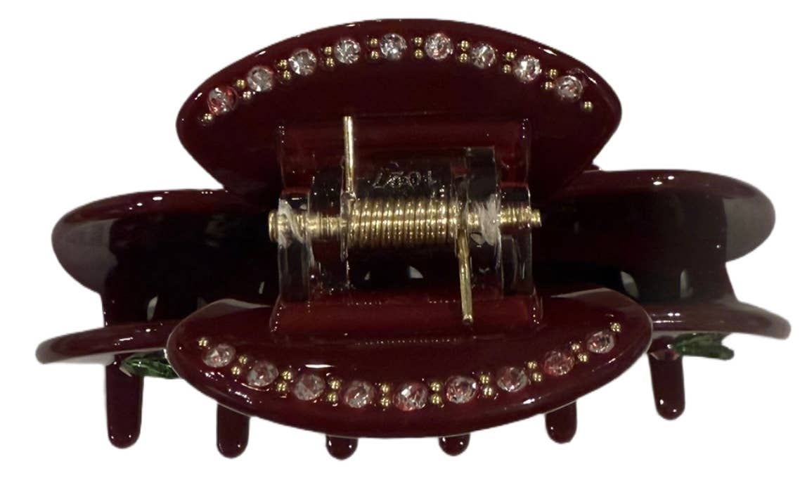The Cherry Merlot Clip brings vintage sweetness with a bold twist. Drenched in a rich red-wine hue and adorned with dainty cherry details, this claw clip adds the perfect pop of color to any hairstyle. Its glossy finish and sturdy grip make it both fashionable and functional—ideal for a touch of playful elegance, whether you're dressing up or keeping it casual.